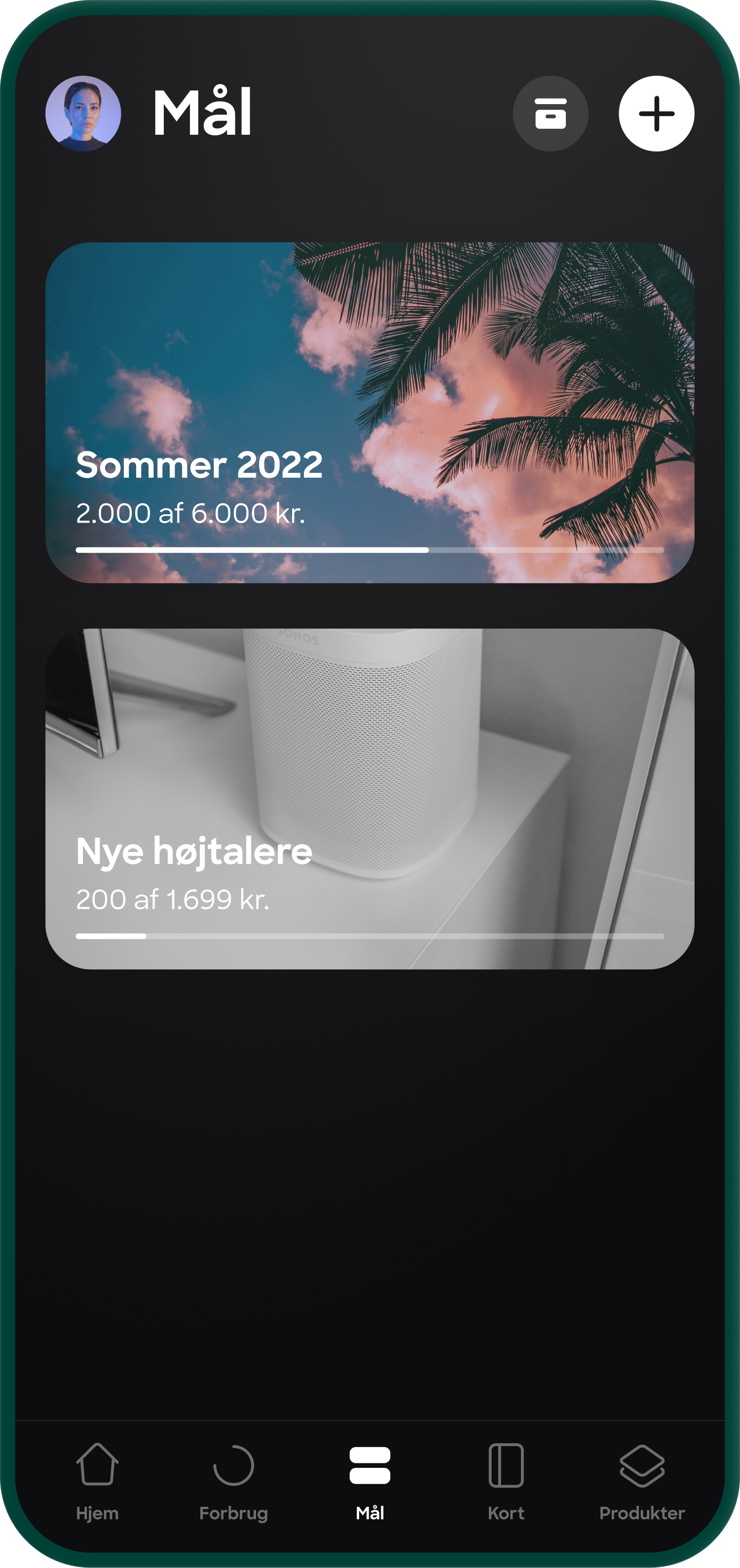 I Lunar-appen kan du med vores opsparingsfunktion sætte nye opsparingsmål. For der er måske en ferietur, der pludselig skal aflyses eller tid til at reflektere over nye mål, du gerne vil opnå.