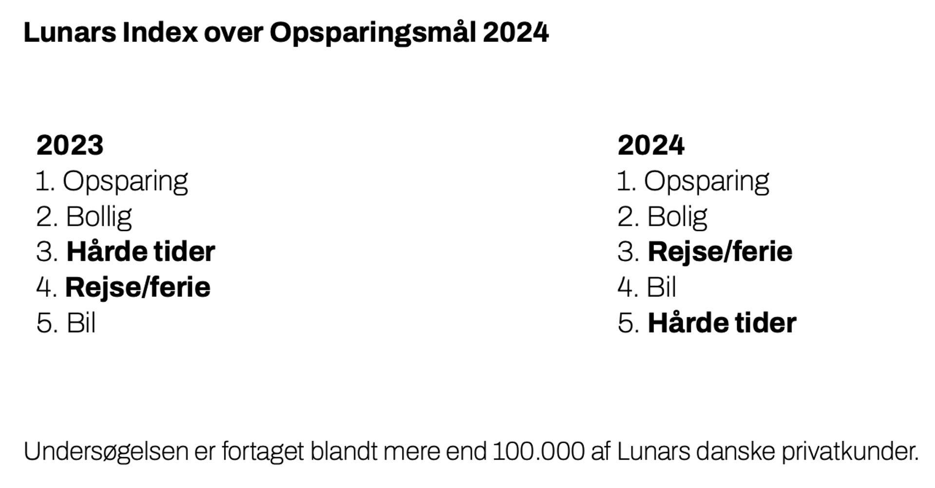 Tendenser i Lunars privatkunders opsparingsmål for 2024 sammenlignet med 2023