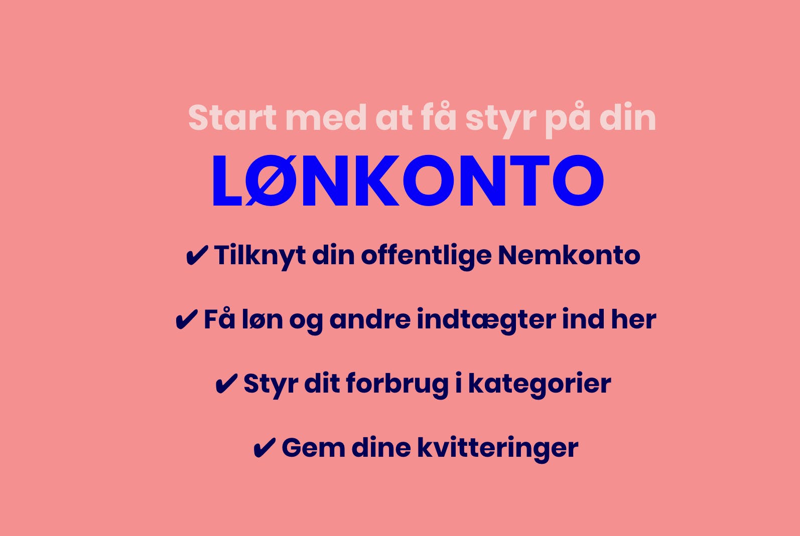 Fra lønkontoen skal du styre dit privatforbrug - alle de ting, der ikke er faste udgifter (psst. de kommer under “budgetkonto”).