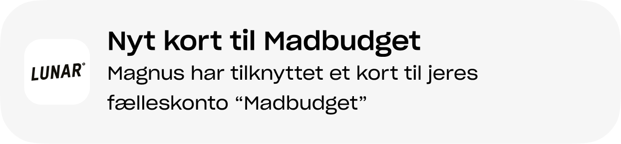 Med en Lunar-fælleskonto er det nemmere og sjovere at dele økonomi med din kæreste, dine roomies og dine venner.