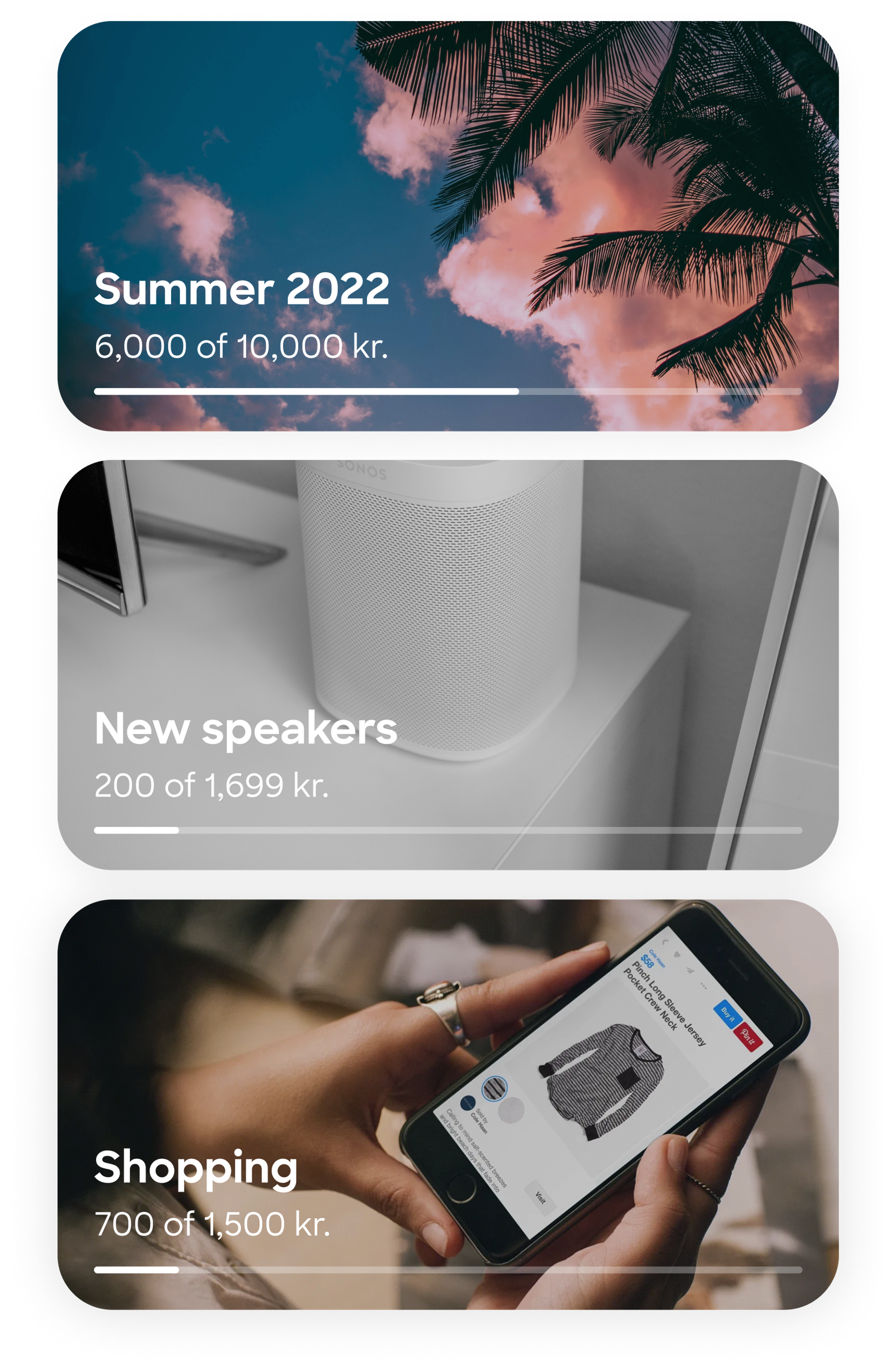 You can also use more creative ways to mark your progress. At Lunar, you can use the savings feature Goals. With it, you can divide every saving into a goal, and give each goal a name and picture that visualizes your personal dream. You can also add an array of automatic payments to help you automate the process.
