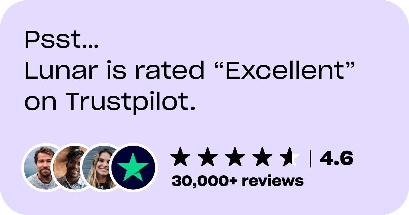 Thatโs why, with Lunar, you get everything you need for your day-to-day finances, from tools that help you manage your money, to positive interest rates, travel benefits and even a metal bank card.