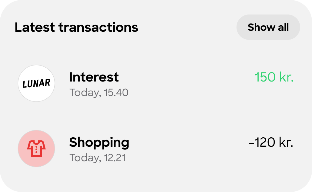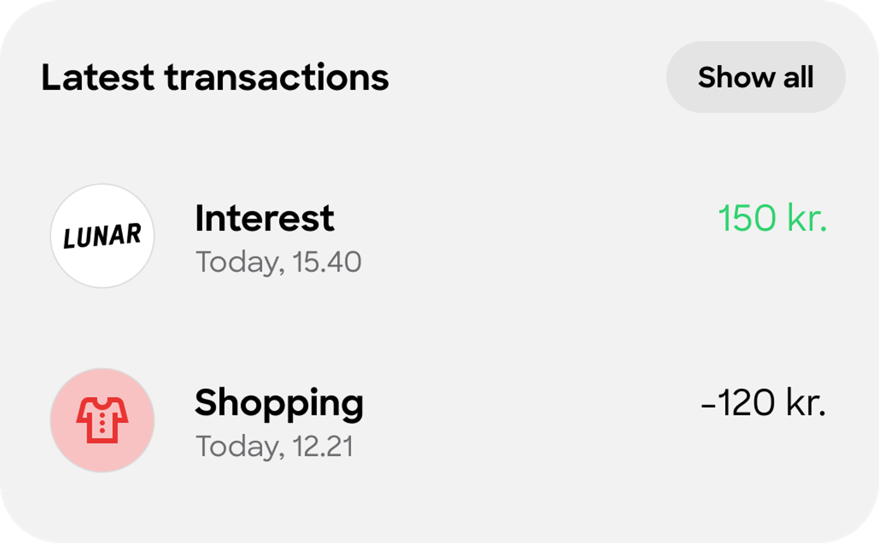 We have our banking licence in place and are supervised by the Danish Financial Supervisory Authority, like all other Danish banks. That means your money is covered by the Guarantee Fund up to 100,000 EUR (approx. 750,000 DKK) in case of Lunar Bank's bankruptcy or reconstruction.